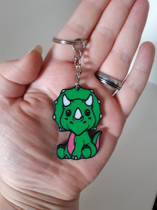 Reise zurück in die Urzeit mit diesem entzückenden Triceratops-Schlüsselanhänger! Dieser kleine, grüne Dino mit seinen charakteristischen Hörnern und dem Nackenschild ist einfach unwiderstehlich. Mit seinen großen, freundlichen Augen ist er ein charmantes Accessoire für jeden Schlüsselbund, Rucksack oder jede Tasche. Hergestellt aus robustem Material, ist dieser Schlüsselanhänger langlebig und wird dich auf all deinen täglichen Abenteuern begleiten. Er ist ein ideales Geschenk für alle Dino-Fans, Kinder oder einfach jeden, der ein süßes und einzigartiges Detail an seinen persönlichen Gegenständen schätzt.